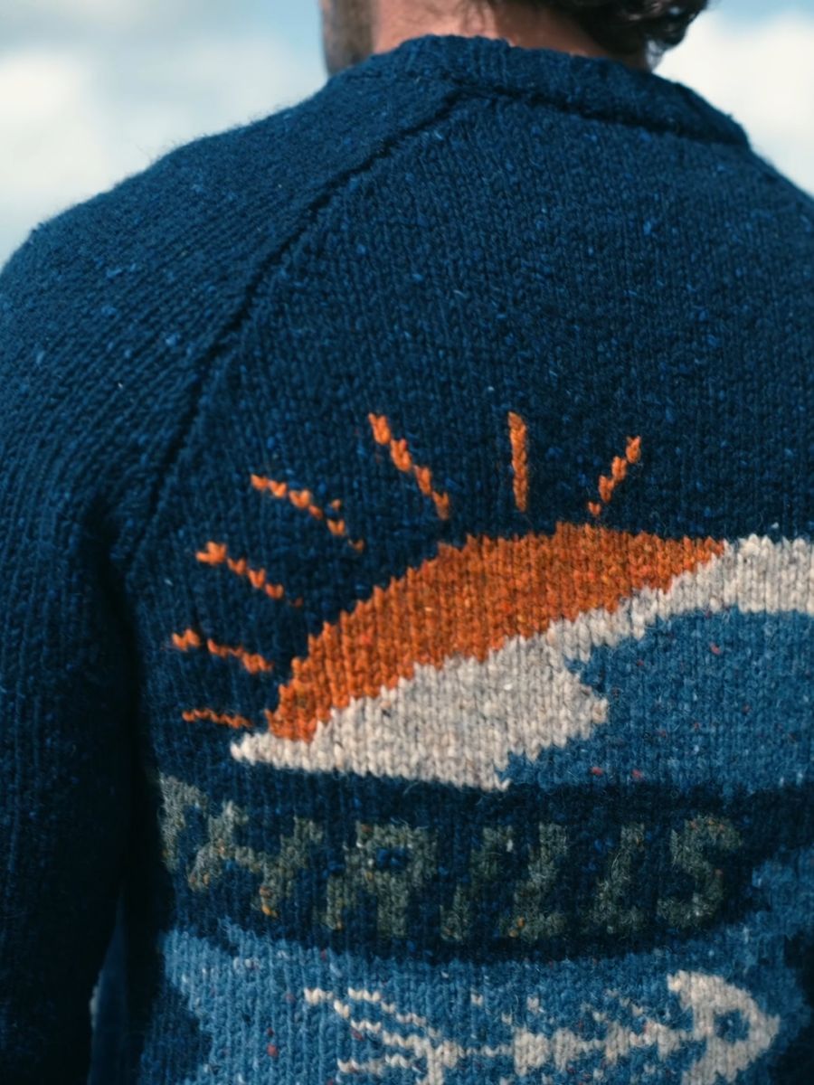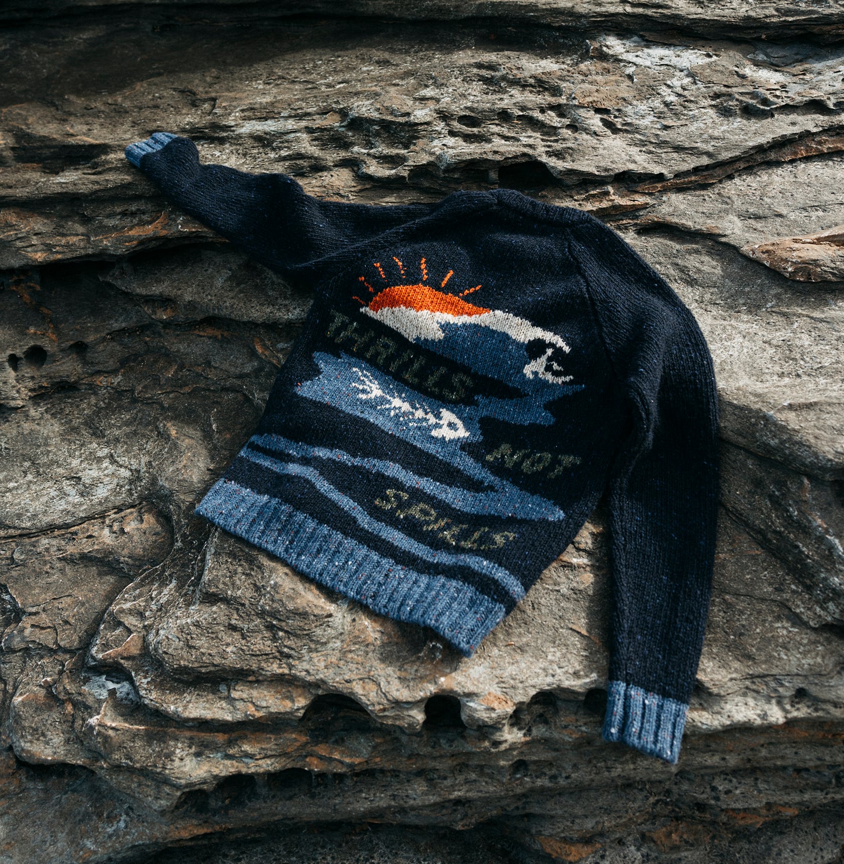 Finally, a jumper that lets you signal your eco-consciousness while looking seriously cozy. The Finisterre Thrills Not Spills Crew Knit (£250) is the ultimate chunky knit for the man who believes in soft Kilkarra wool and protecting the ocean. This relaxed-fit jumper, with its hand-knitted feel, boldly displays a surfer riding a huge wave—sadly, right next to an oil spill. It’s a stylish, intarsia-knitted reminder that we, as surfers and humans, need to clean up our act. It’s basically a billboard for responsibility that you can wear straight to the pub. Warning: may prompt conversations about marine conservation. But hey, at least you’ll be the warmest person arguing about carbon footprints.