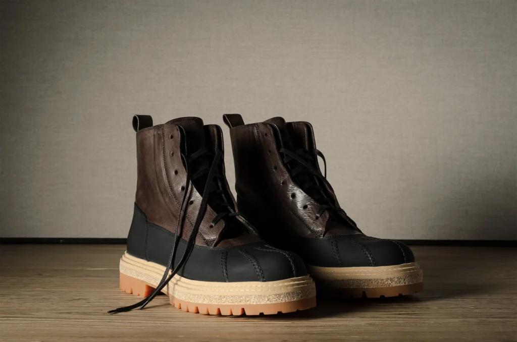 If you’re tired of people disrespecting your personal space (or your footwear choices), the Hard Graft Alpine Duck Boots (£558) are the 4×4 of your shoe rack. These are not modest footwear; they’re rugged, heavy-duty statements that practically dare people to step on your toes (spoiler: they won’t).Handcrafted in Italy, these beasts feature vegetable-tanned leather lined with calfskin, capped off with rubberized calfskin duck boot styling to fend off water and urban grime. Underneath? A Vibram lug sole—the equivalent of off-road tires. They fit snugly but leave room for your wiggling digits. Go ahead, stomp through the city mud. You’ll be comfortable, protected, and sporting an undeniable, expensive “Pizzazz.”