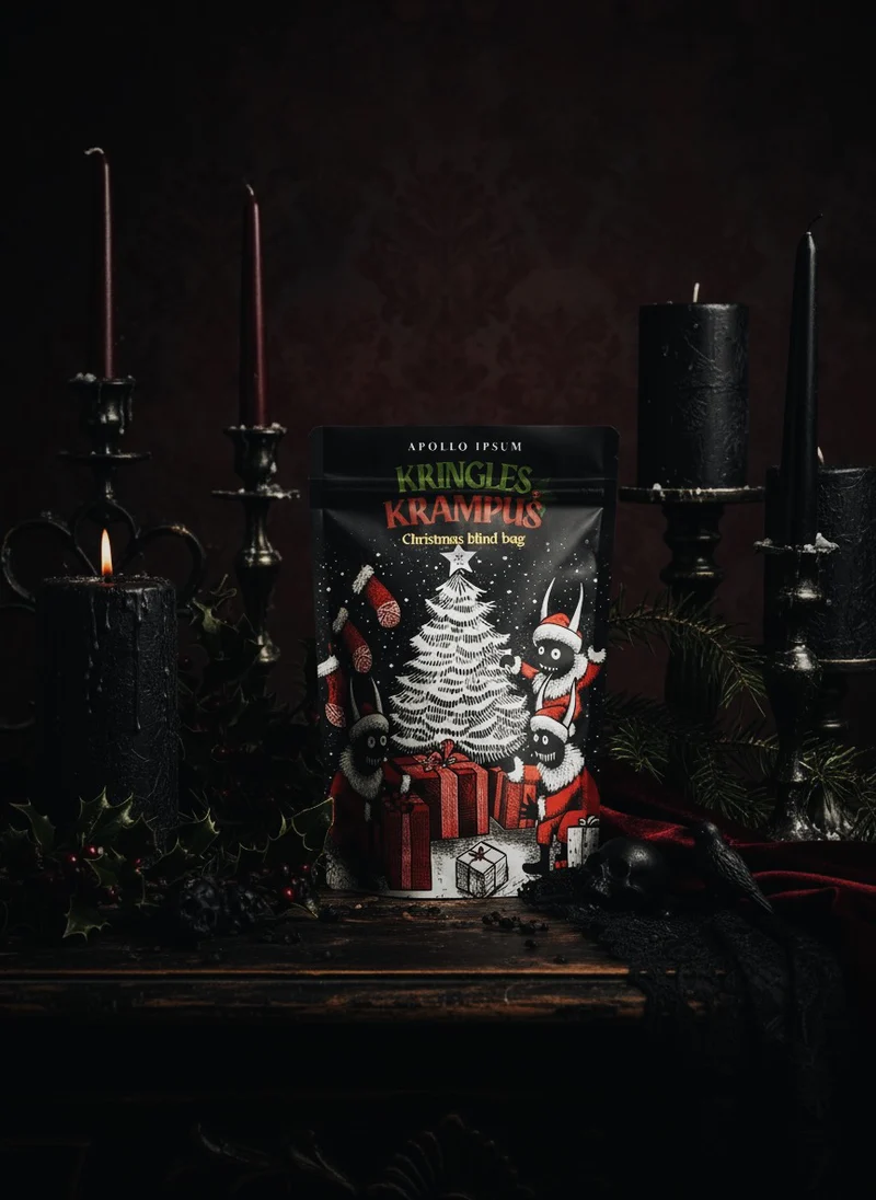 Tired of the same old cinnamon-and-pine Christmas scents? It’s time to embrace the dark side of winter with the Apollo Ipsum Kringles Krampus Blind Bag (£15). This isn’t just a candle; it’s a gambling addiction wrapped in gothic art.