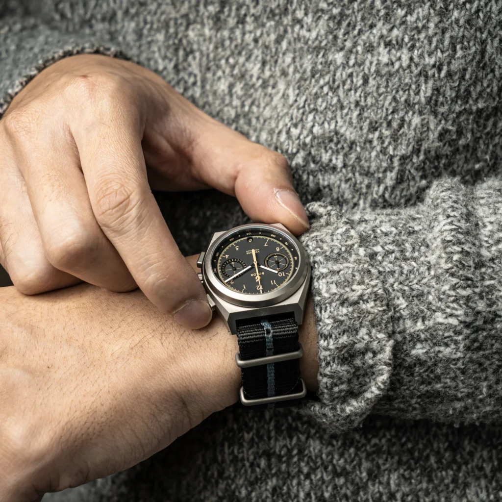 Powered by a Japanese SII VK64 Mecaquartz movement, this 38mm titanium beast is lighter than your excuses for skipping the gym, yet tough as nails with 200m water resistance. The NATO strap ensures a snug fit, even when you’re (metaphorically) screaming through gravel roads. And yes, it has a tachymeter – perfect for measuring your speed, or, more likely, calculating how fast you can devour a pizza. It’s the quintessential field watch experience, making even your commute feel like a daring special stage.