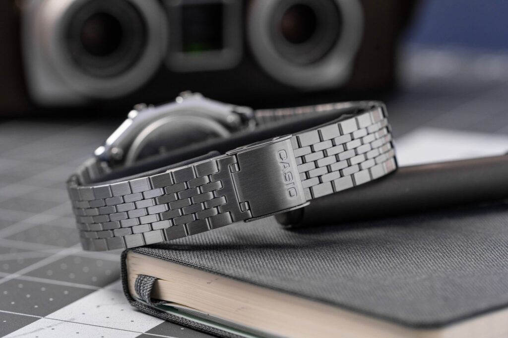 Finally, a watch that looks like it belongs in Back to the Future but actually functions in the present. The Casio ABL‑100WE Series ($94.95) rocks that glorious, unapologetic vintage aesthetic—sleek chrome, square case, and a stainless steel bracelet. It screams “1985 cool,” but don’t let the pixelated face fool you.