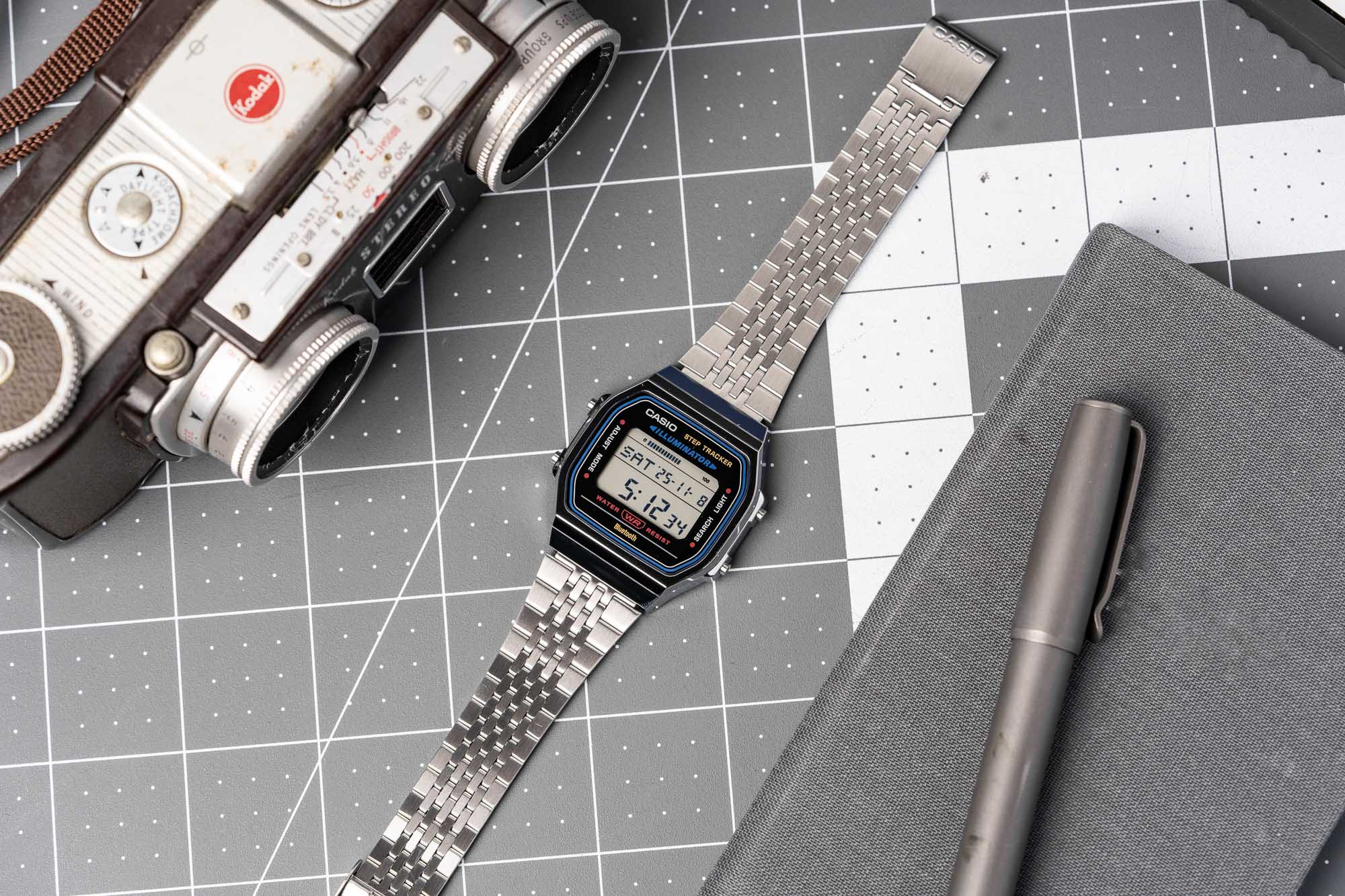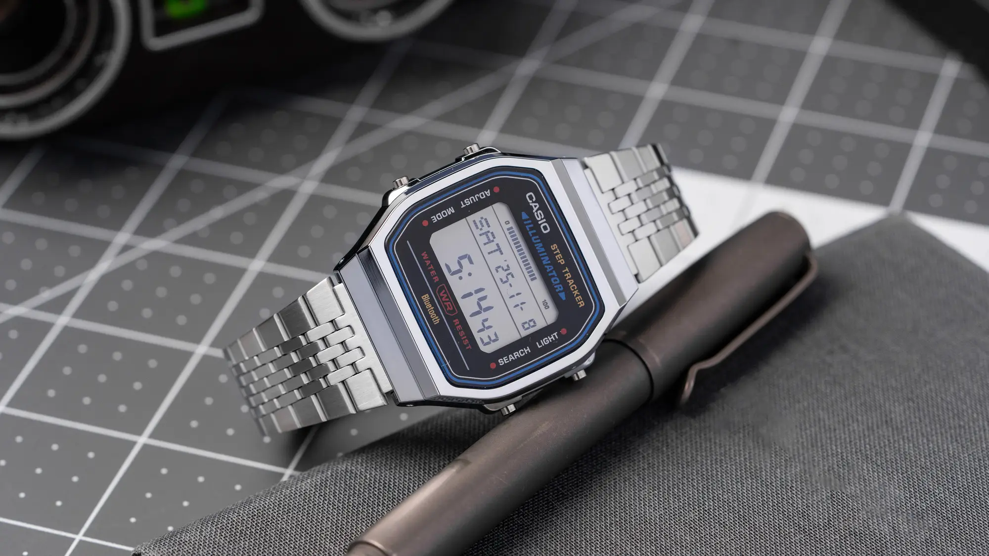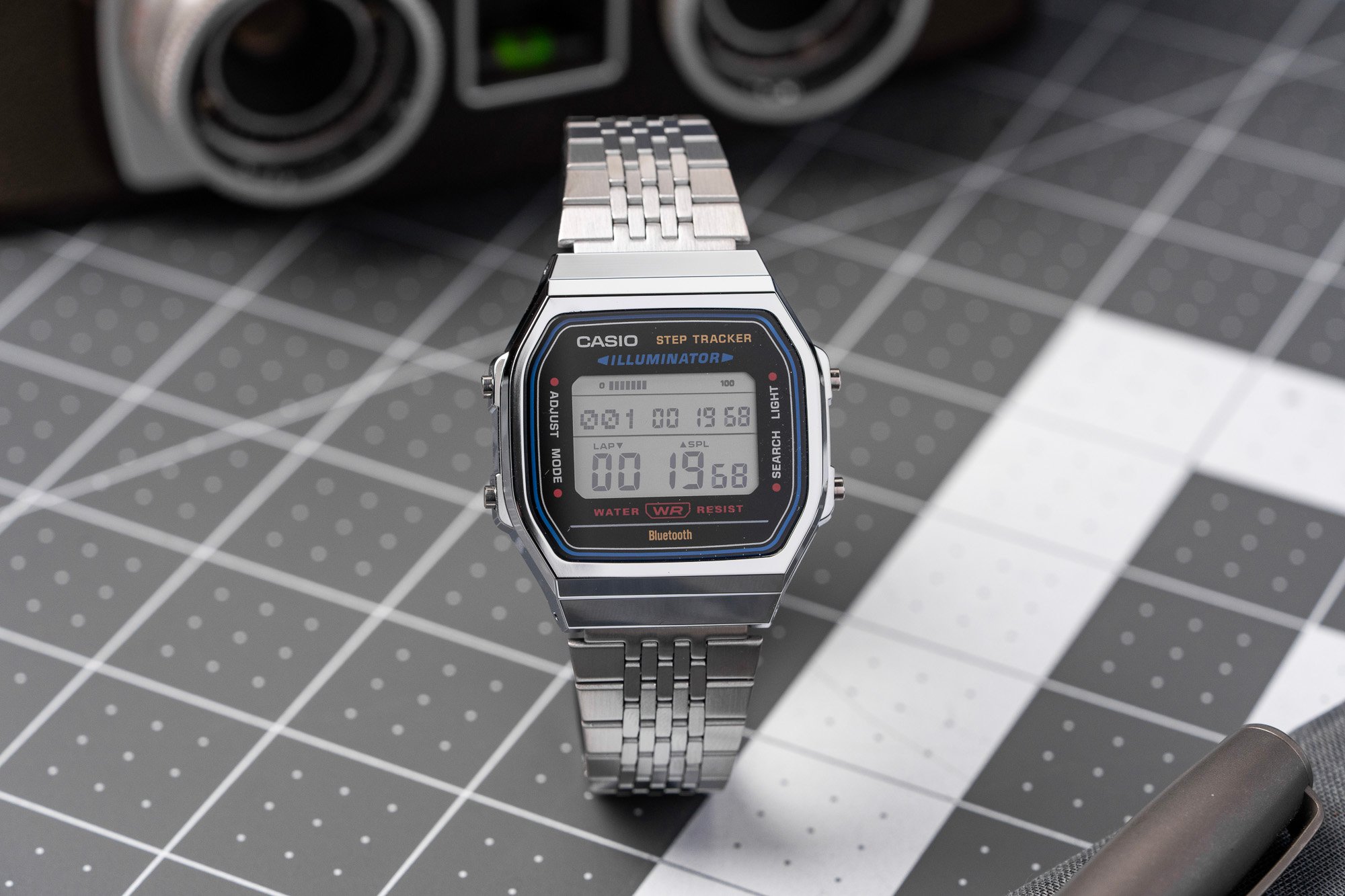 Finally, a watch that looks like it belongs in Back to the Future but actually functions in the present. The Casio ABL‑100WE Series ($94.95) rocks that glorious, unapologetic vintage aesthetic—sleek chrome, square case, and a stainless steel bracelet. It screams “1985 cool,” but don’t let the pixelated face fool you.