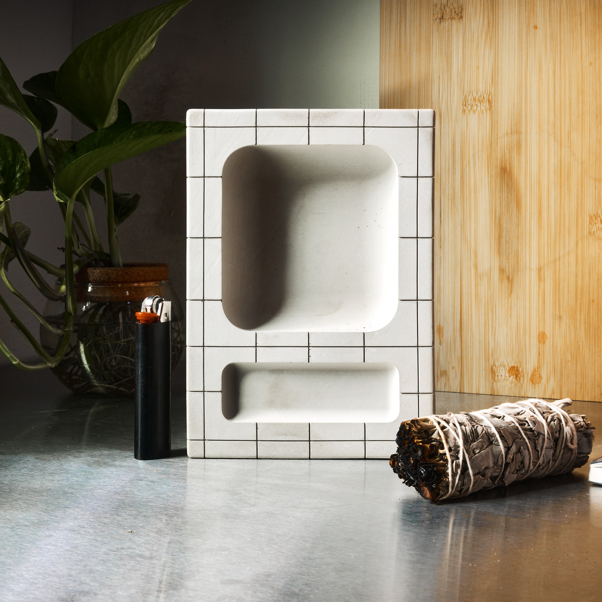 Handcrafted from concrete with a modern design, it features a raised grid pattern for a distinctly minimalist “poolside” look (for your ash!). Thanks to a clever hidden base, the tray appears to subtly hover, adding a touch of visual intrigue. It even has a small indentation specifically for your lighter, so it’s ready to burn one as soon as you are. Handmade with care in Austin, Texas, this little tray is perfect for adding a surprisingly stylish touch to any room. For $75, make sure your ash is lounging poolside in style.