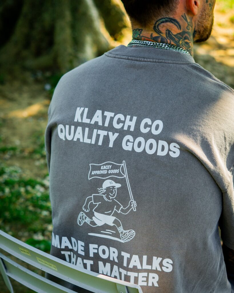 But wait, there’s more! Matt’s grandad, a true legend by the sound of it, had a factory in Leicester back in the 60s and 70s. Not only did he pass on the sewing bug to young Matt, but his band supported Led Zeppelin in ’69. Yes, you read that right. So when you slip on a Klatch tee, you’re not just wearing high-quality, sustainably made threads designed by someone with 8+ years in the biz; you’re essentially wearing a tiny piece of rock and roll history.