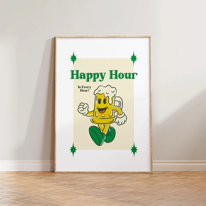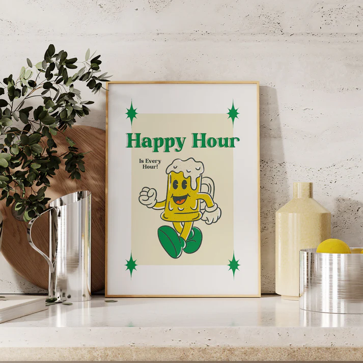 Let’s be honest, some concepts are just universally excellent. Happy Hour is one of them. And now, you can pay tribute to this vital period of the day with the Lune Club Retro Happy Hour Print. Because your wall decor should reflect your deepest priorities.