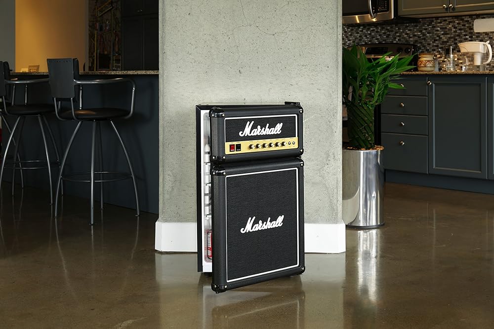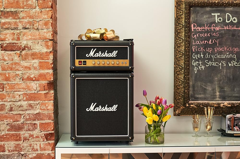 Finally, a Marshall stack that won’t trigger a noise complaint from the neighbors. The Marshall Black Edition Bar Fridge ($399.99) is the ultimate “green room” upgrade, masterfully disguised as a legendary amp. Featuring authentic fret cloth, tunable knobs, and that iconic white logo, it’s designed to make your den look like a world-tour dressing room.
