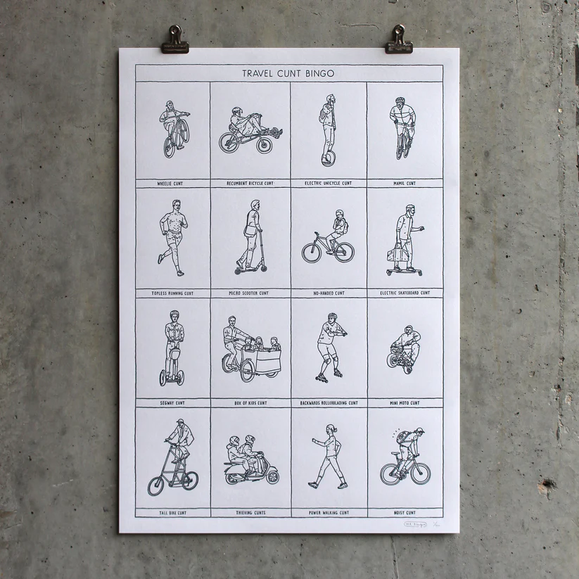 Sized slightly larger than A3 (because this kind of artistry needs room to breathe), it’s from a limited edition of 300, each one signed by the notoriously brilliant Mr. Bingo himself. Hand-printed in the UK, this is the perfect gift for the discerning gentleman who enjoys a bit of edgy humour and perhaps travels frequently (or just enjoys tutting at people). Hang it proudly and let it serve as a hilariously cynical reminder of the glorious weirdness of humanity. Just maybe warn your nan before she pops round for tea.