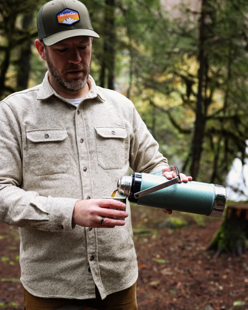 Is his current flannel thinner than his excuses for not doing the washing up? Enter the MuskOx Grand Flannel in Seagrass. This isn’t a shirt; it’s a stylish, wearable fortress. At a hefty 8.9oz, it’s twice the weight of lesser flannels, making it perfect for rugged adventures like conquering the garden shed or braving the supermarket’s freezer aisle. Double-brushed for a softness that could calm a wild beast (or a toddler), it features two chest pockets for his phone and secrets. At £118, it’s a serious investment in comfort that says, “I love you, now go chop some wood.”
