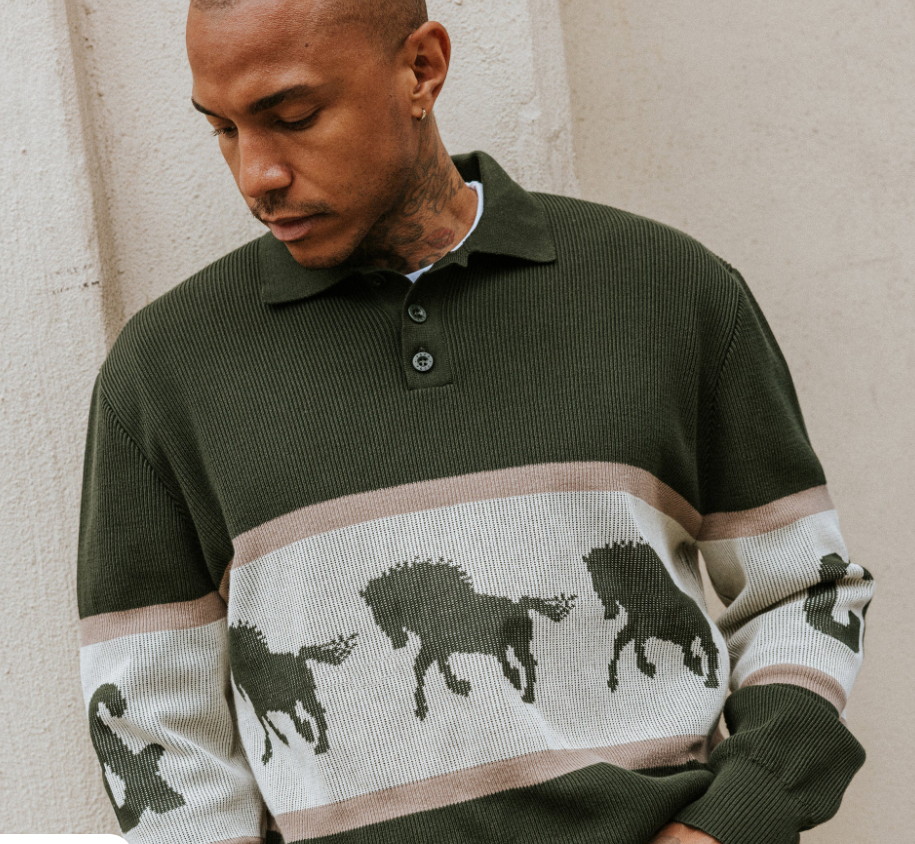We’ve found the perfect garment for the man whose spirit animal is a classic Americana icon but whose preferred habitat is a well-lit pub. Feast your eyes on the P&Co Bronco Knitted Polo for £98. This isn’t your grandad’s stale golf shirt; it’s a long-sleeve, midweight, olive green masterpiece spun from 100% ribbed cotton.
