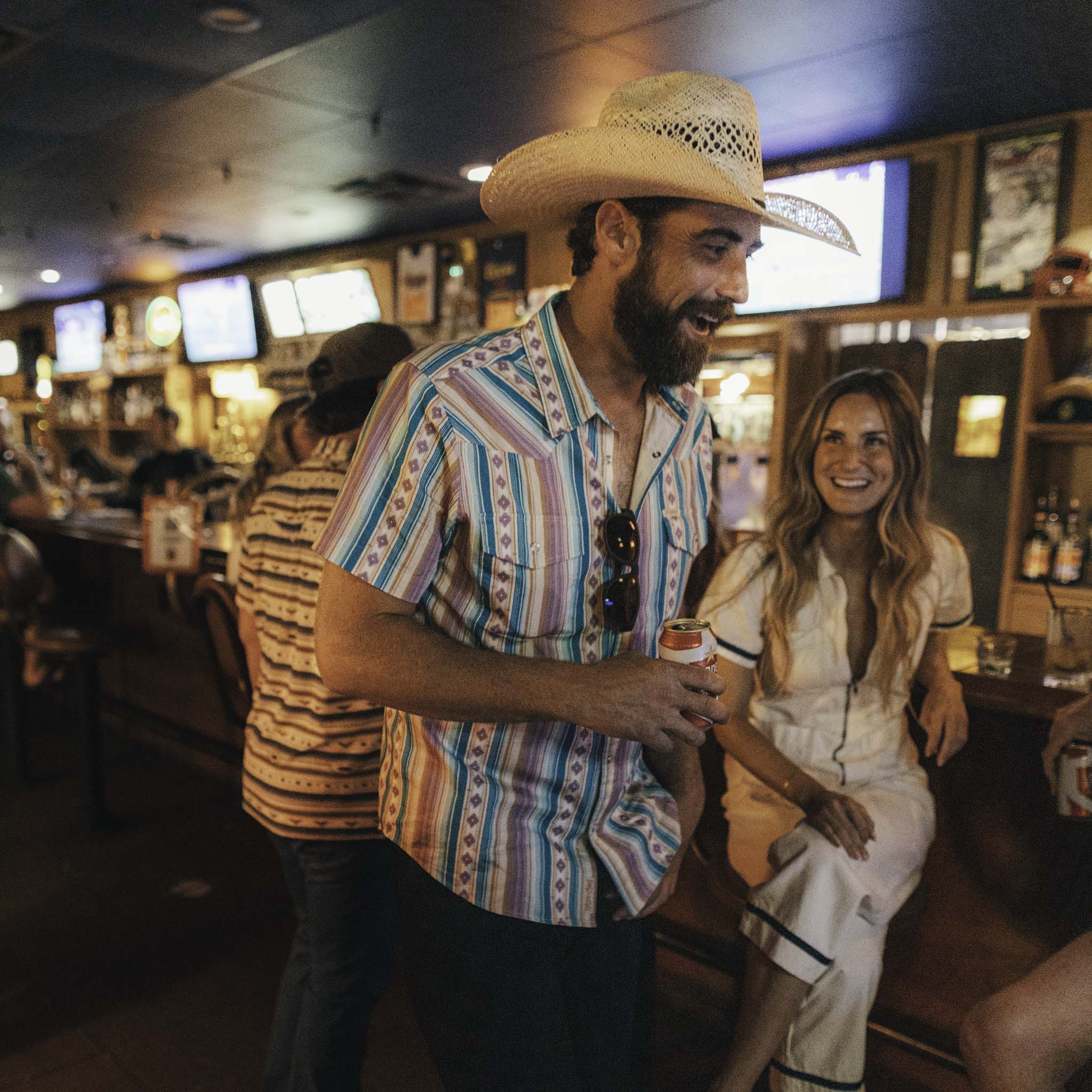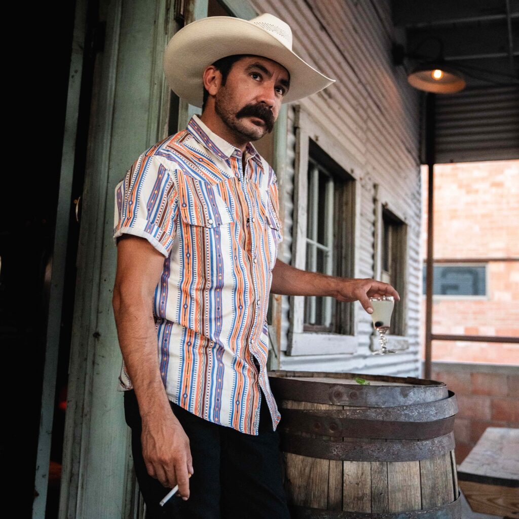 This magnificent garment takes “inspiration from some of our favourite ‘serape’ patterns” and marries it with a “vintage Western stripe.” The result? A shirt that’s less “ranch hand” and more “enigmatic heir to a West Texas fortune who definitely knows something about that missing prize-winning steer.” You know the vibe.