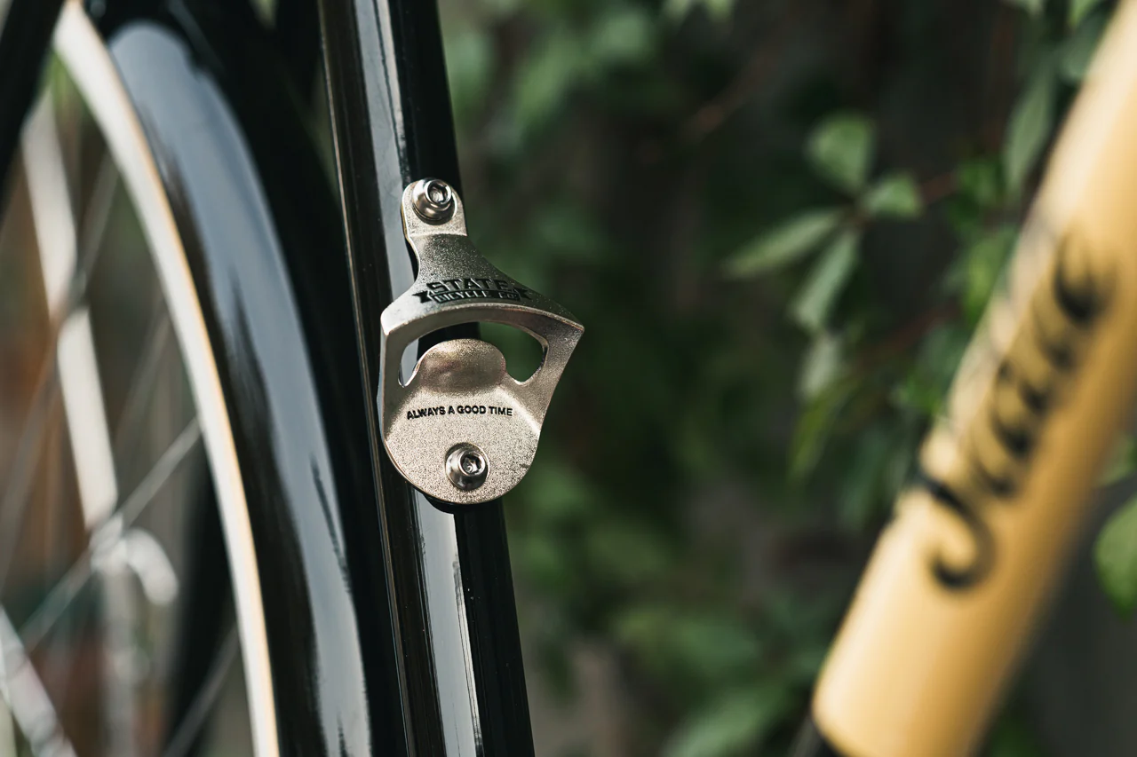 Sporting a “nothing more timeless than a Black & Tan with chrome accents” aesthetic, this ultra-light cruiser comes equipped with “mustache-bars” (finely groomed, naturally) for that upright, distinguished riding position. Forget complex gear shifting; choose between single-speed simplicity or a 3-speed internal hub – perfect for conquering those “demanding routes” (like the one with that particularly steep pub garden). A pedal-backwards coaster brake provides “worry-free stopping power,” ensuring graceful halts outside your favourite establishments. But the real clincher? A frame-mounted bottle opener. Yes, you heard right. Because sometimes, the journey calls for an impromptu refreshment. Complete with fenders, a chain guard to protect your pristine trousers, and a riveted leatherette saddle, this bike is built for leisurely commutes and celebratory pit stops. Cheers to that!