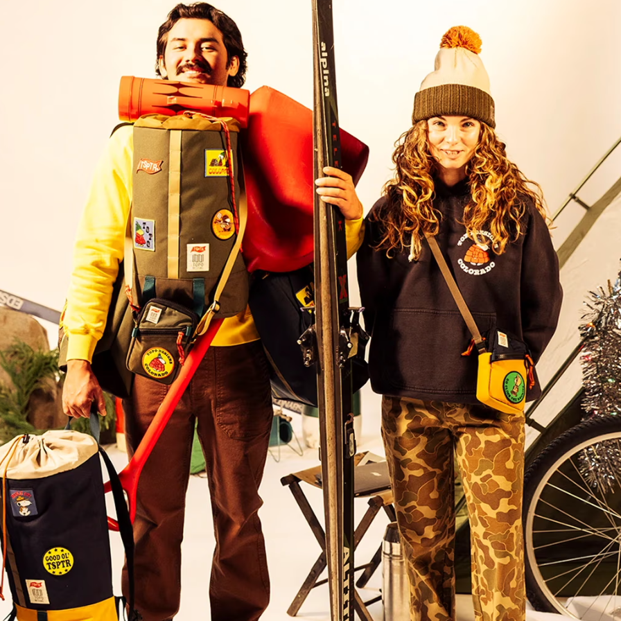 Finally, a rugged daypack that proves you don’t have to sacrifice childhood joy for adult durability. The Topo Designs x TSPTR Cosmos Backpack ($109) is a Colorado-inspired classic built from tough, recycled nylon that laughs in the face of wear and tear. This “stuff sack classic” boasts a minimalist crag design, a huge 22L compartment with cinch-top closure, and a sleeve that swallows most 16″ laptops—perfect for the adventurer who still needs to file TPS reports. But the real genius? It’s festooned with four exclusive Peanuts patches, letting the world know you’re serious about heritage construction, but also appreciate the philosophical musings of Charlie Brown.