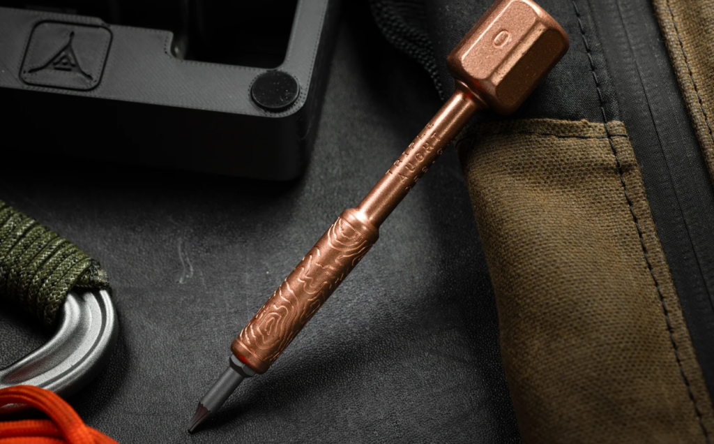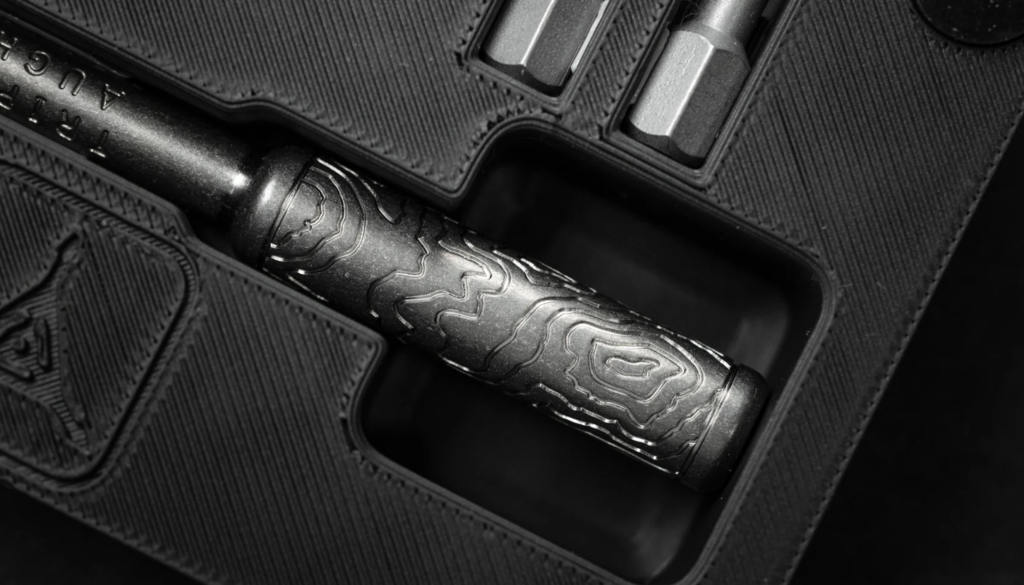 Designed by Brian Fellhoelter, this isn’t for assembling flat-pack furniture; it’s for dismantling your other expensive toys. With a bearing-fitted copper hex head, it offers a “quick takedown” action that is terrifyingly satisfying. The milled topo shaft—available in titanium, bronze, or copper—rests in a custom 3D-printed display stand, transforming a simple tool into a desktop sculpture. Finally, a way to feel handy without actually getting your hands dirty.