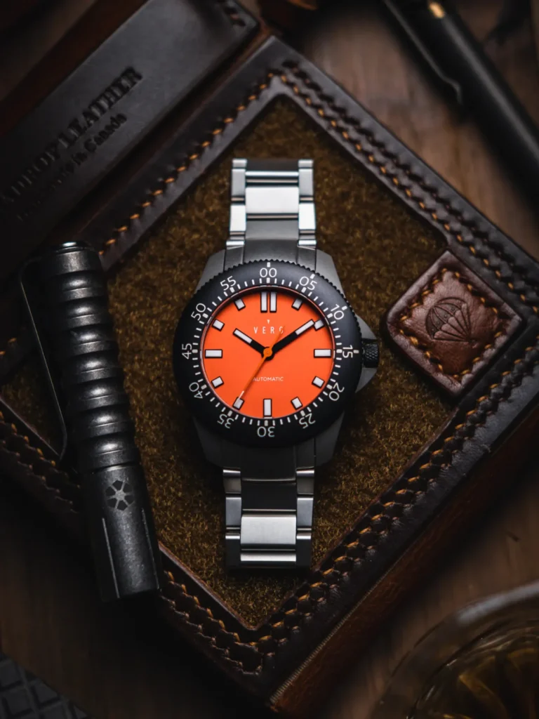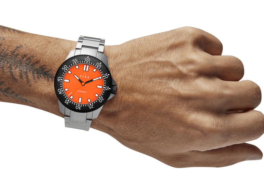 Gentlemen, are you tired of watches that cower at the mere sight of a splash? Do you yearn for a timepiece that’s as comfortable exploring the murky depths of your morning coffee as it is actual ocean trenches? Then allow us to introduce the Vero Open Water 41 Daybreak Watch ($908), a horological marvel that’s less “delicate wrist candy” and more “aquatic adventure companion.” This isn’t just a watch; it’s a meticulously crafted beast of the deep, sporting a matte bead-blasted 316L stainless steel case and a DLC-coated, 60-click unidirectional bezel begging to time your next daring underwater mission (or, more likely, your brewing tea).
